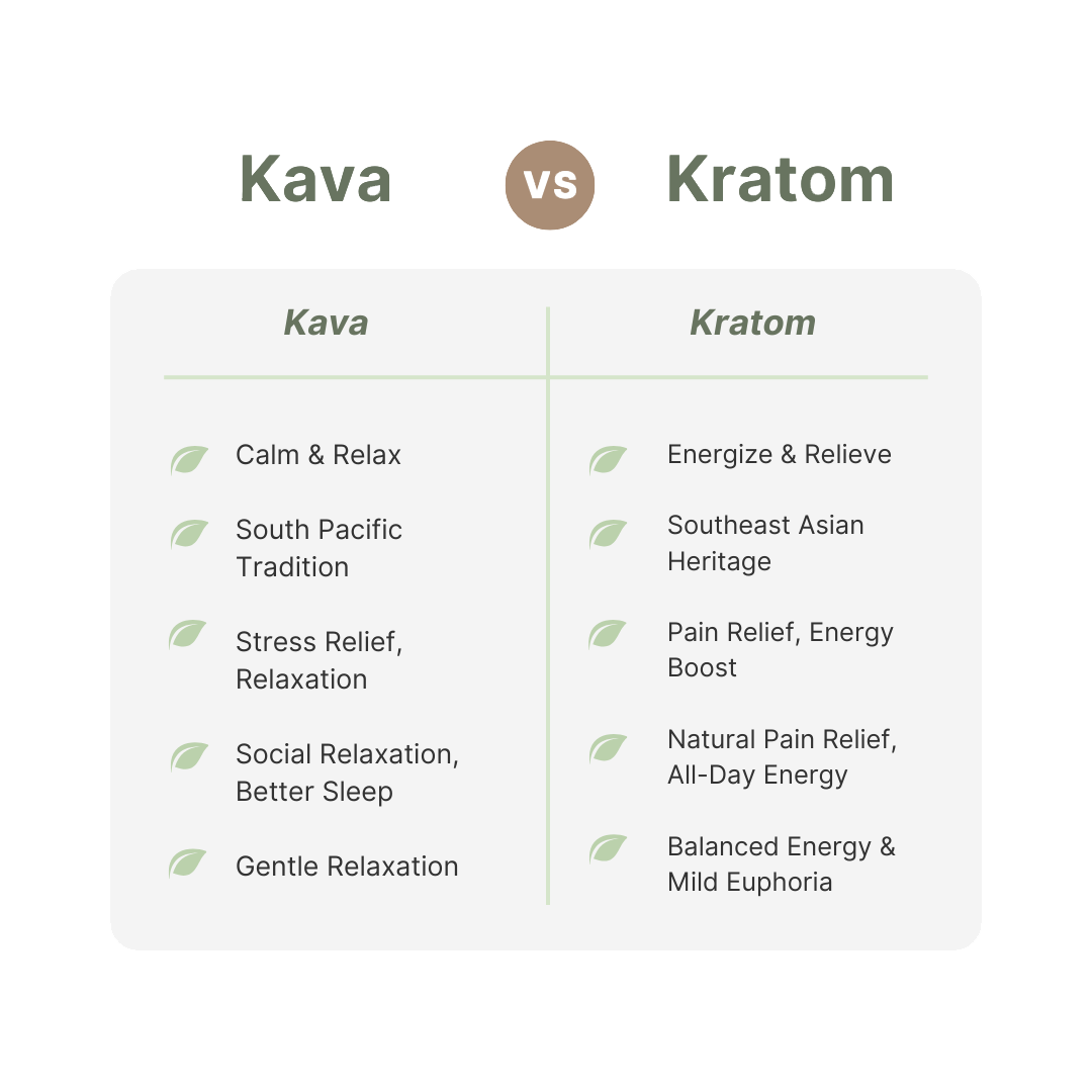 No, they’re different. Kava helps with relaxation and stress relief, while kratom can stimulate or sedate depending on the dose. Each serves unique purposes, so use them responsibly!